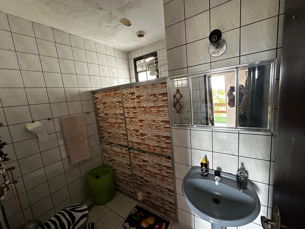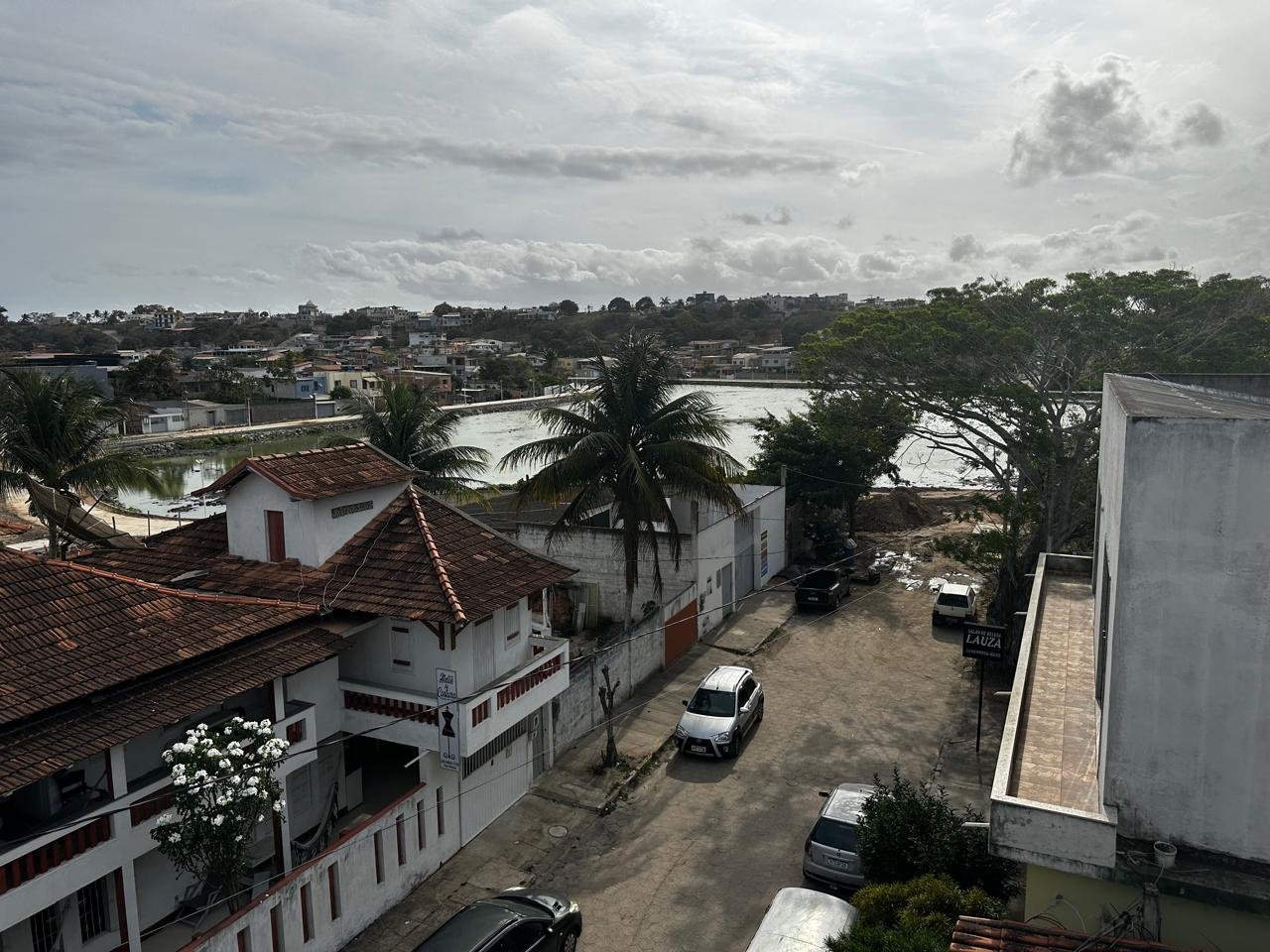 Apartamento no segundo pavimento do prédio residencial de três pavimentos, contendo 02 quartos com varanda, um deles suíte, banheiro social, circulação, sala de estar com varanda, cozinha, área de serviço e garagem presa para 01 carro.