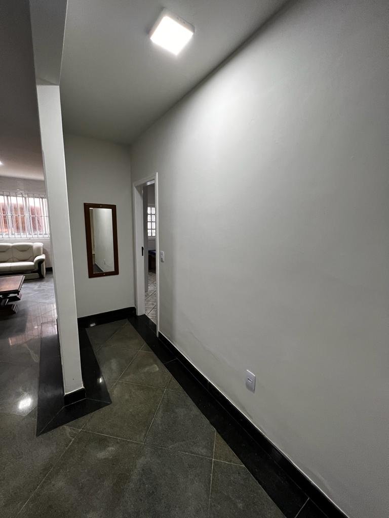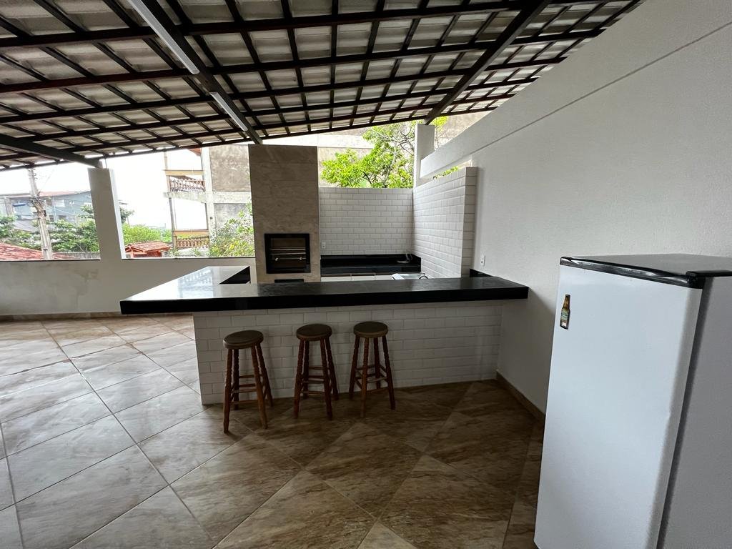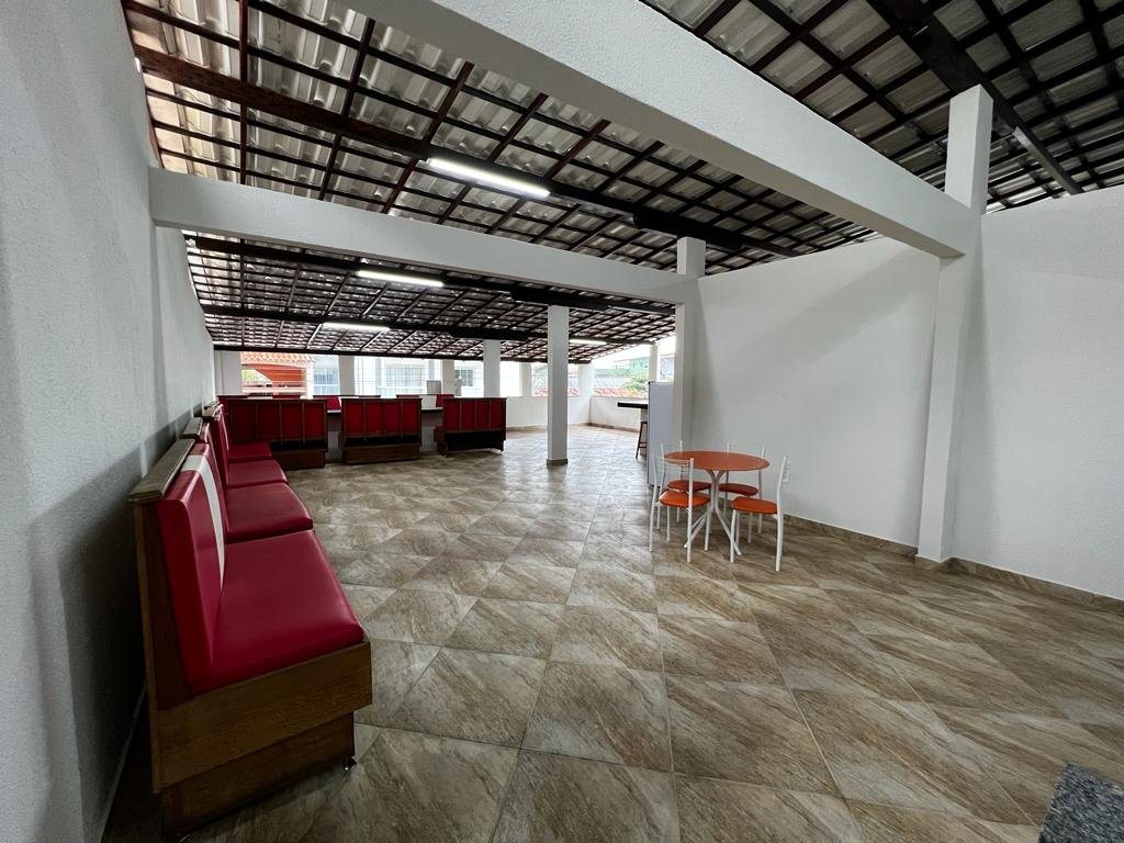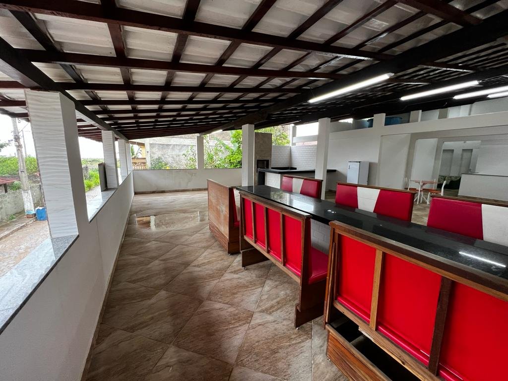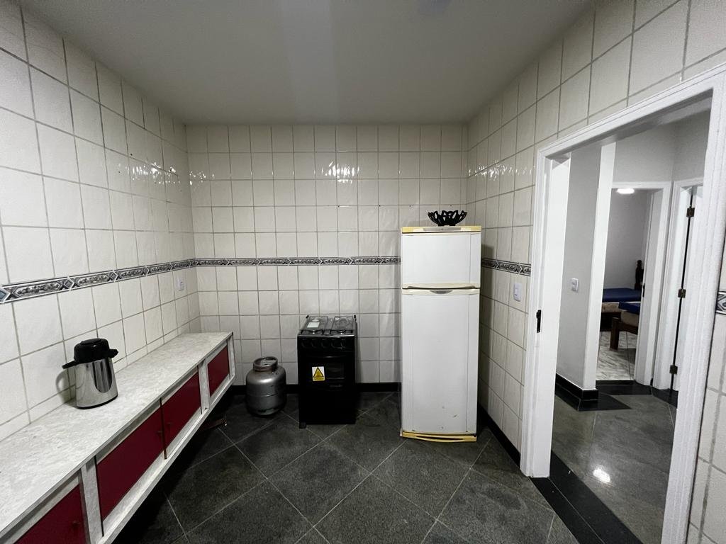 Duplex com telhado colonial, piso de granito, armário embutidos, contendo no primeiro pavimento: 01 suíte com cama de casal, armário embutido, ventilador de teto, 01 quarto com 02 camas de solteiro, armário embutido e ventilador de teto, 01 quarto com 03 camas de solteiro, armário embutido e ventilador de teto, banheiro social, sala ampla com sofá e mesa para refeições, cozinha montada com armário, geladeira, fogão e utensílios para cozinha, área de serviço e garagem com portão em alumínio branco para 04 carros, e no pavimento superior contendo uma suíte com cama de casal e uma cama de solteiro, uma saleta com sofá, um depósito, uma área gourmet com churrasqueira, armários, freezer, fogão e uma mesa ampla de refeições com vários bancos de apoio.