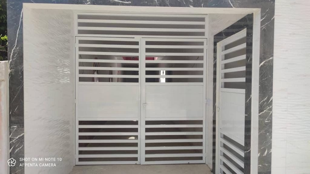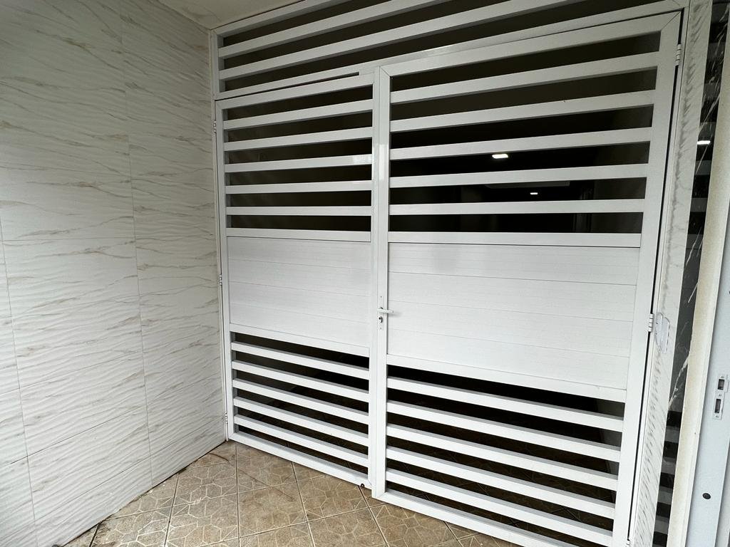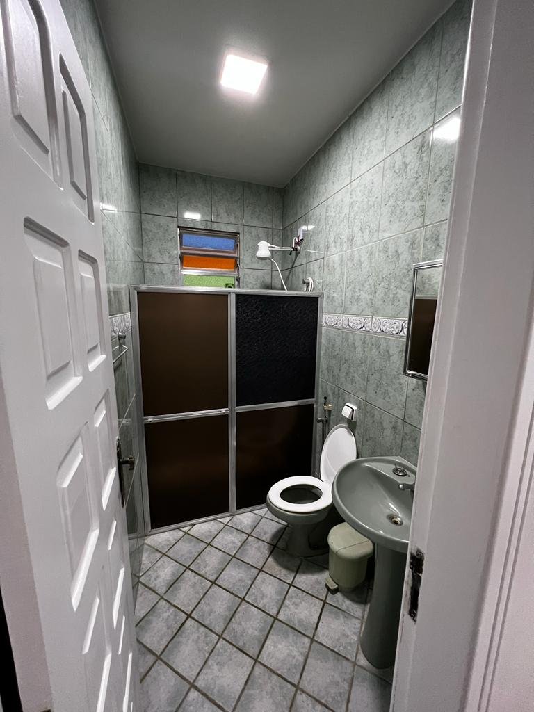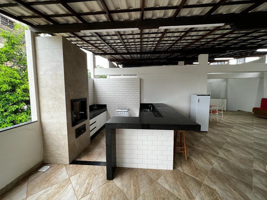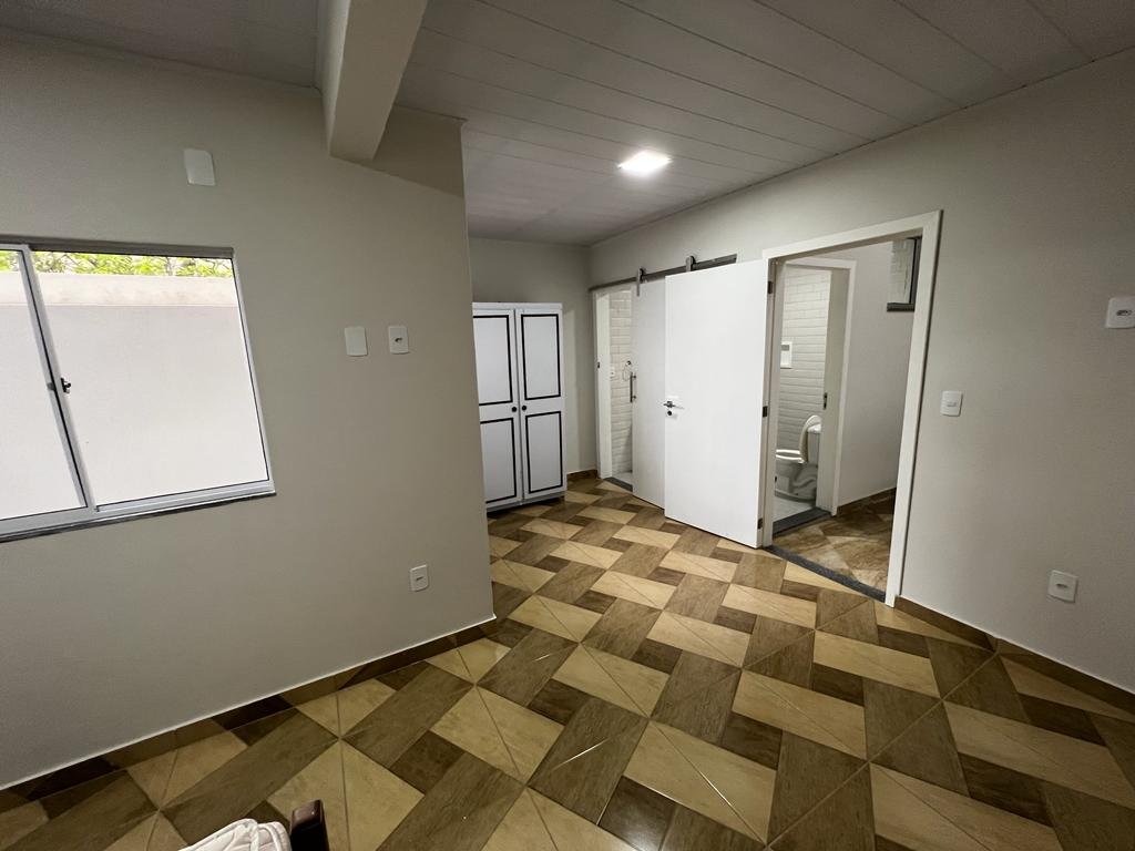Duplex com telhado colonial, piso de granito, armário embutidos, contendo no primeiro pavimento: 01 suíte com cama de casal, armário embutido, ventilador de teto, 01 quarto com 02 camas de solteiro, armário embutido e ventilador de teto, 01 quarto com 03 camas de solteiro, armário embutido e ventilador de teto, banheiro social, sala ampla com sofá e mesa para refeições, cozinha montada com armário, geladeira, fogão e utensílios para cozinha, área de serviço e garagem com portão em alumínio branco para 04 carros, e no pavimento superior contendo uma suíte com cama de casal e uma cama de solteiro, uma saleta com sofá, um depósito, uma área gourmet com churrasqueira, armários, freezer, fogão e uma mesa ampla de refeições com vários bancos de apoio.